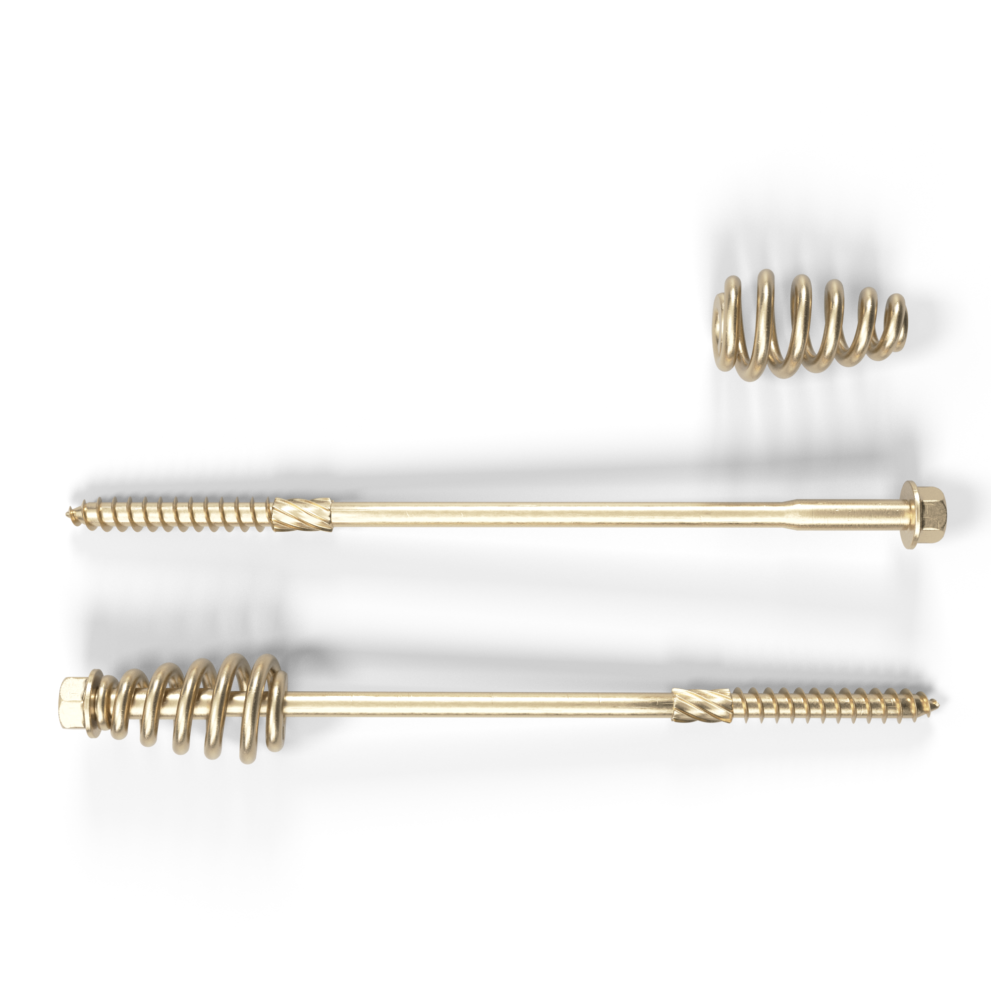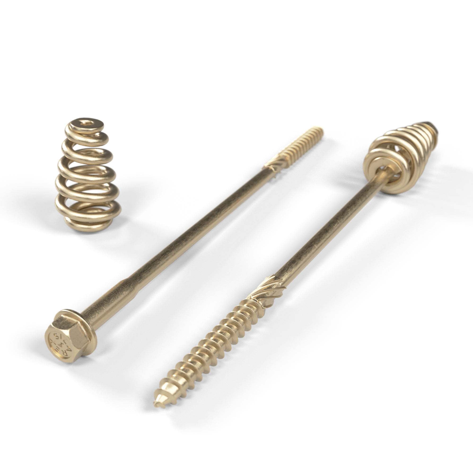 Пружинный крепеж силарекс состоит из двух основных элементов – это шуруп и пружина сжатия. Шуруп, как винтовая тяга, имея увеличенную высоту витка резьбы 1,45 мм с усилием до 1500 кг стягивает деревянные детали между собой на этапе сборки стеновой конструкции брусовых и бревенчатых зданий, устраняя щели и зазоры между венцами. Пружина конической формы ежесекундно пытаясь разжаться с усилием 320-340кг подтягивает венец к венцу, не давая образоваться межвенцовым зазорам. За счет верхнего поджатого нажимного витка и дополнительного нижнего поджатого опорного витка пружина сама фиксирует себя на штоке шурупа. Это позволило исключить использование шайб в конструкции 3-го поколения пружинного крепежа. Зенкер - фреза на шурупе, которая увеличивает проходное отверстие в устанавливаемой детали, что позволяет предотвратить защемление стержня шурупа со временем. Для монтажа пружинного крепежа с зенкером не требуется двухзаходное сверло, что значительно упрощает и ускоряет процесс сборки стен деревянных зданий. Материал стен деревянного здания подвержен естественным для древесины процессам усушки и набухания, а также изменению линейных размеров деталей и их короблению. Использование при монтаже стен брусчатых и бревенчатых зданий пружинного крепежа Силарекс позволяет на протяжении всего срока эксплуатации здания исключить появление зазоров между венцами. Пружинный узел для бруса; пружинный узел силарекс; пружинный узел тедвуд; пружинный узел tedwood; пружинный узел силы; пружинный узел сила; шуруп и пружина силарекс; купить пружинный узел; пружинный узел для стяжки бруса Применяется при монтаже деталей высотой 240-360 мм