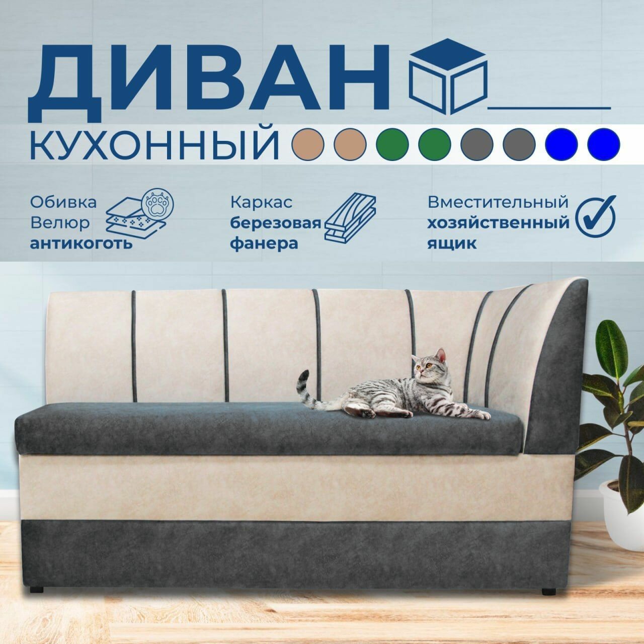Купить Прямой диван Форум-8 (160см правый) Серый/Слоновая кость, для кухни, в прихожую с доставкой по всей России.