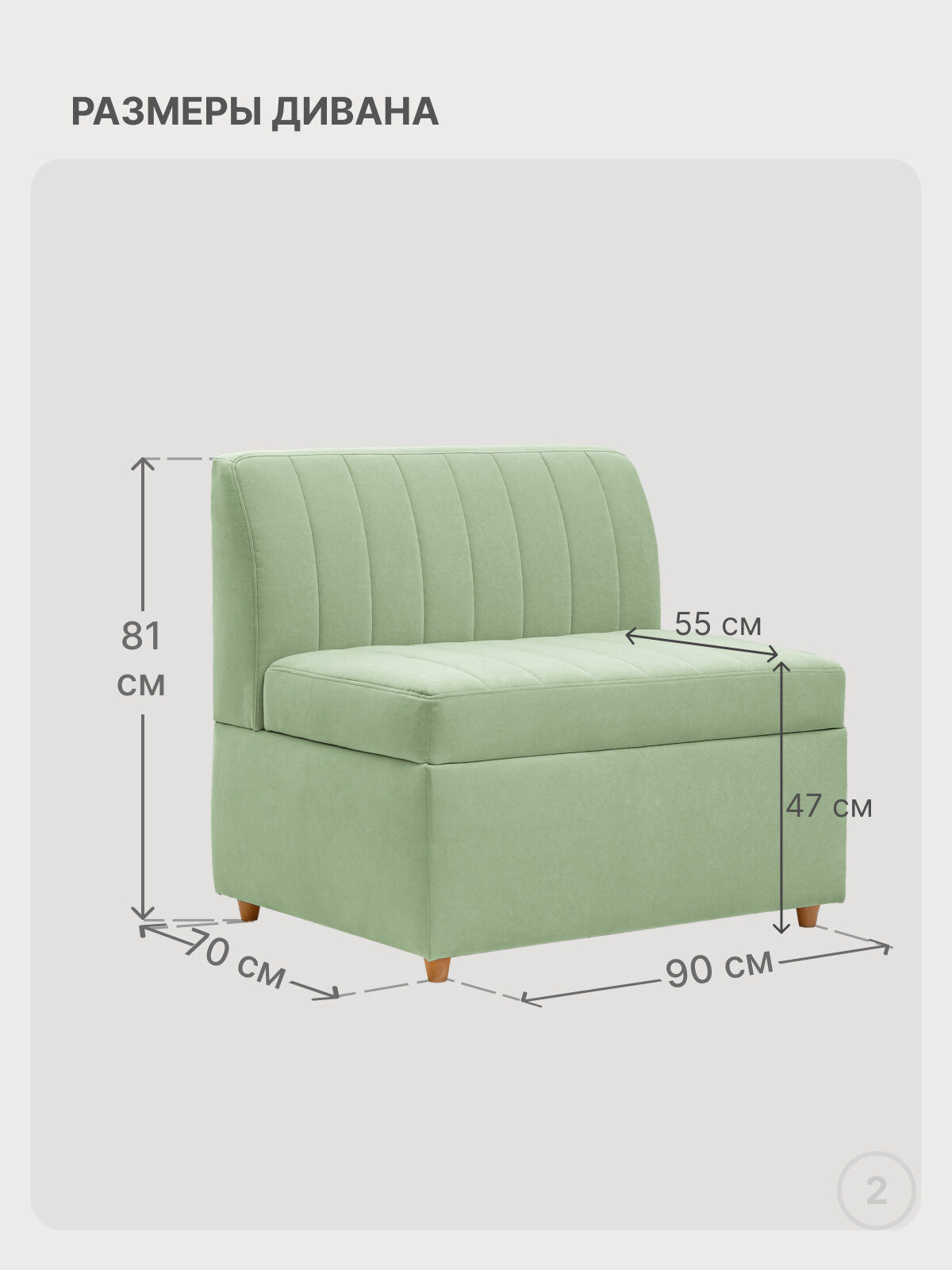 Прямой диван Гермес с ящиком 90x70x81 см, Коннект 70 — велюр, светло-зеленый, для дома и офиса, нераскладной: сравнение цен, характеристики, фото, актуальное наличие и цены.