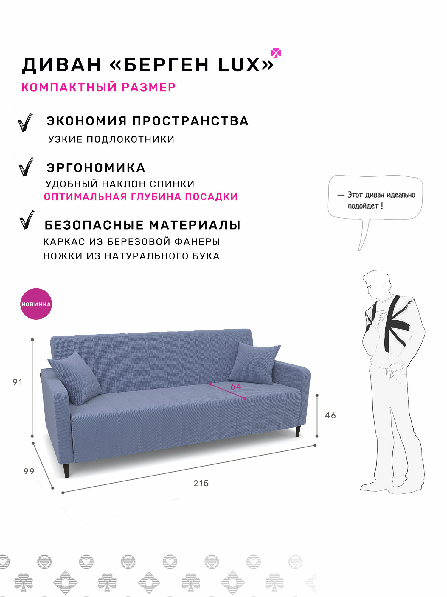 Прямой диван-кровать, раскладной PUSHE, Берген Lux, микровелюр, синий Camaro 23: сравнение цен, характеристики, фото, актуальное наличие и цены.