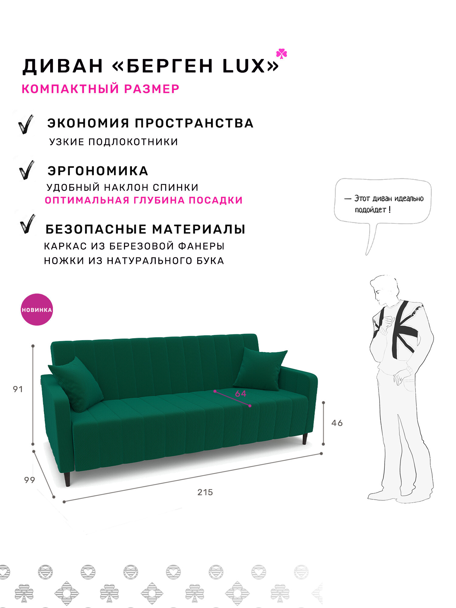 Прямой диван-кровать, раскладной PUSHE, Берген Lux, микровелюр, зеленый Camaro 99: сравнение цен, характеристики, фото, актуальное наличие и цены.