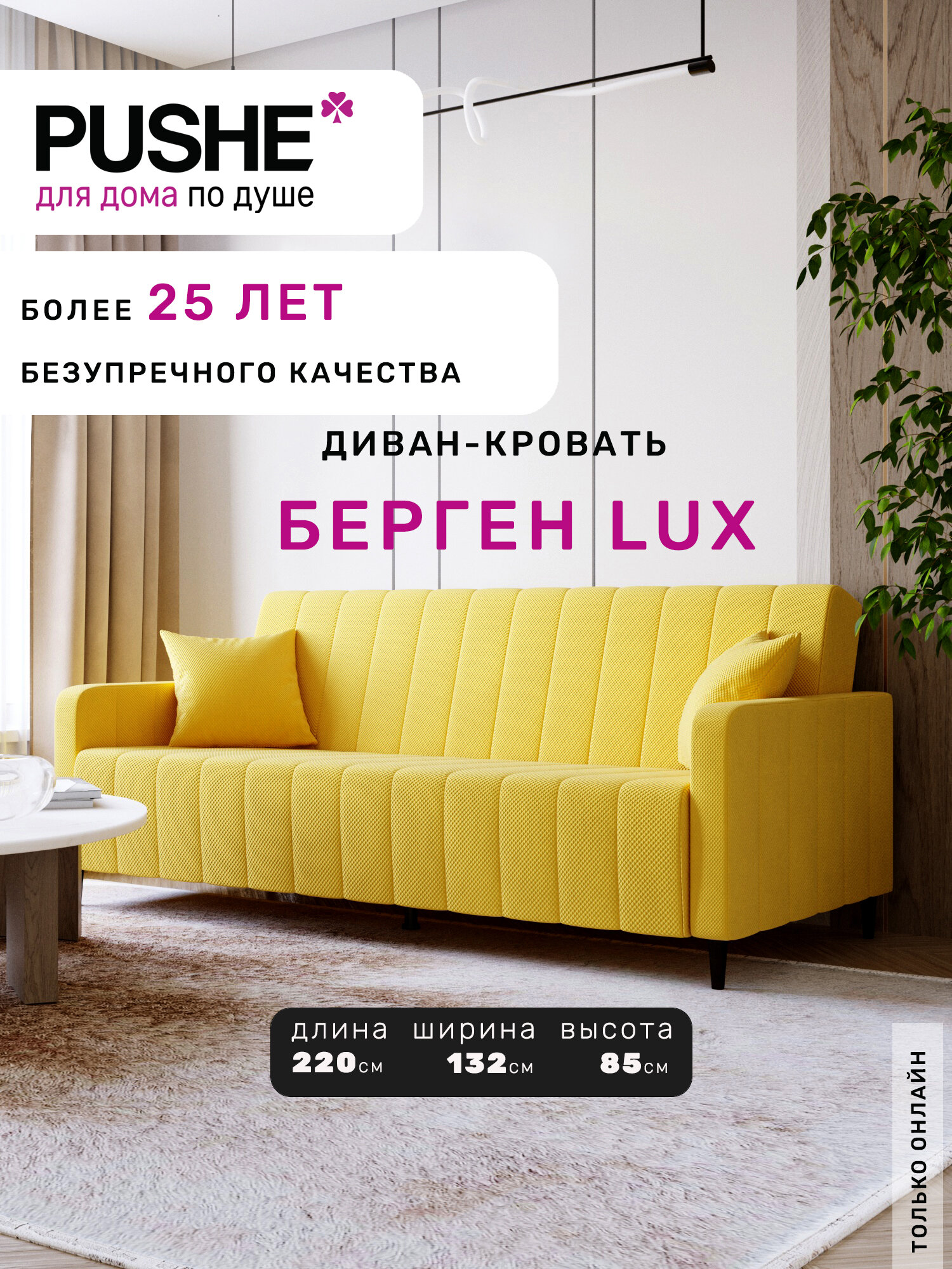 Прямой диван-кровать, раскладной PUSHE, Берген Lux, микровелюр, желтый Camaro 13: сравнение цен, характеристики, фото, актуальное наличие и цены.