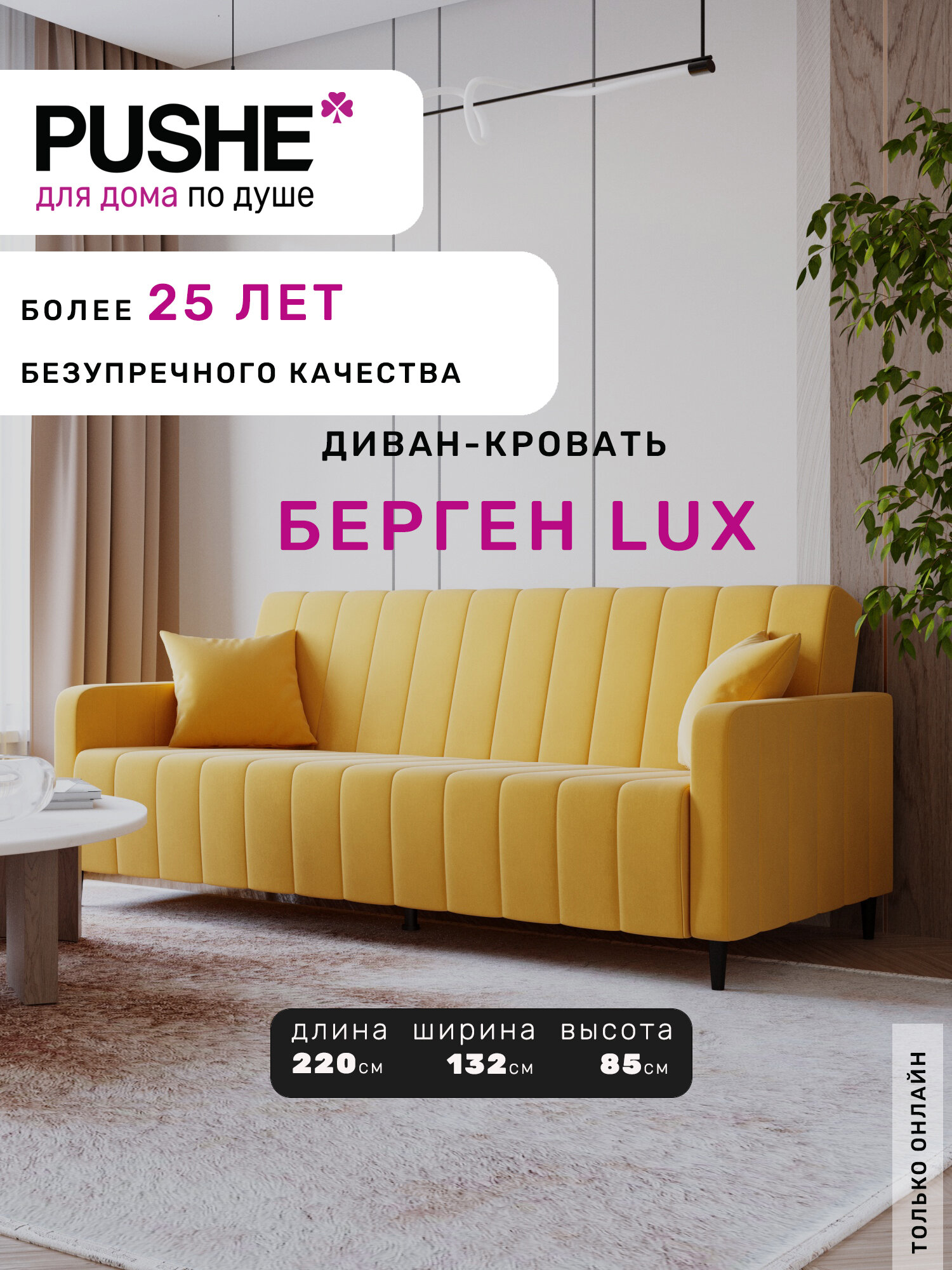 Прямой диван-кровать, раскладной PUSHE, Берген Lux, микровелюр, желтый Mazeratti 11: сравнение цен, характеристики, фото, актуальное наличие и цены.