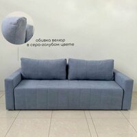 Прямой диван-кровать Марсэ оснащен пружинным блоком боннель , спальное место 160х200см. Общие габариты 233х105х78 см. Внутри вместительный щик для хранения. Обивка выполнена из велюра в серо-голубом цвете, весь диван украшает вертикальная строчка . В наполнении подушек халкон- они плотно набиты, при этом мягкие и отлично держат форму.