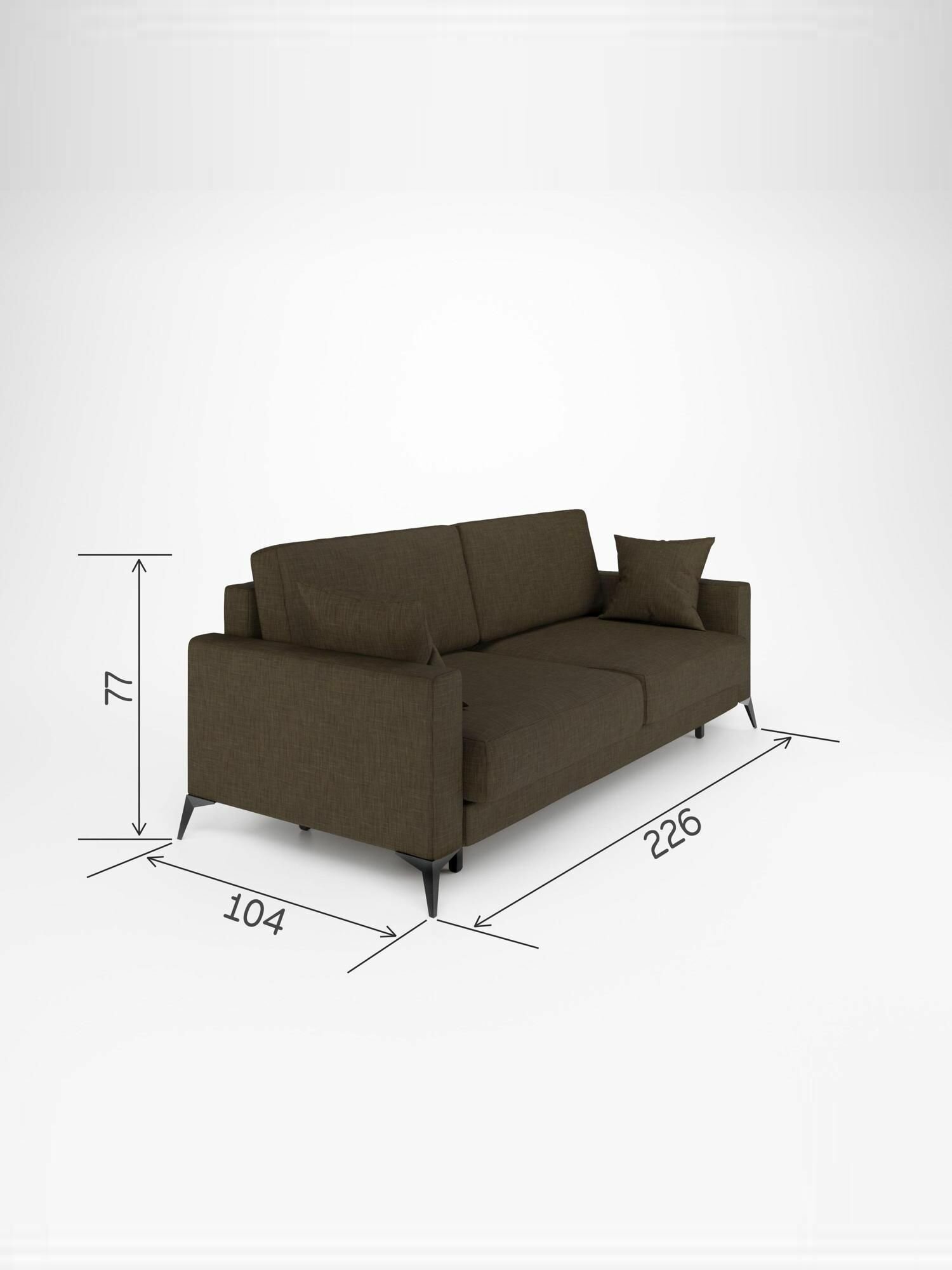 Прямой диван Manons Maison Наоми, раскладной механизм Еврокнижка (Тик-так), Рогожка коричневый, 226х104х77 см: сравнение цен, характеристики, фото, актуальное наличие и цены.