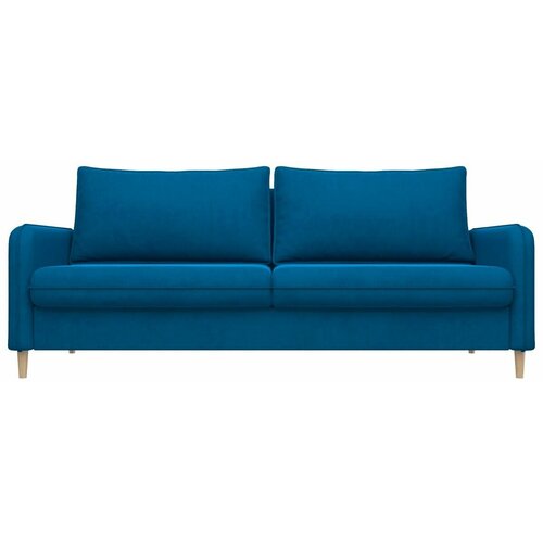 Диван выполнен в синем цвете, который добавит яркости и свежести в интерьер. Обивка из велюра приятна на ощупь и легко чистится. Каркас дивана изготовлен из ЛДСП, фанеры и бруса дерева, что обеспечивает прочность и долговечность изделия.