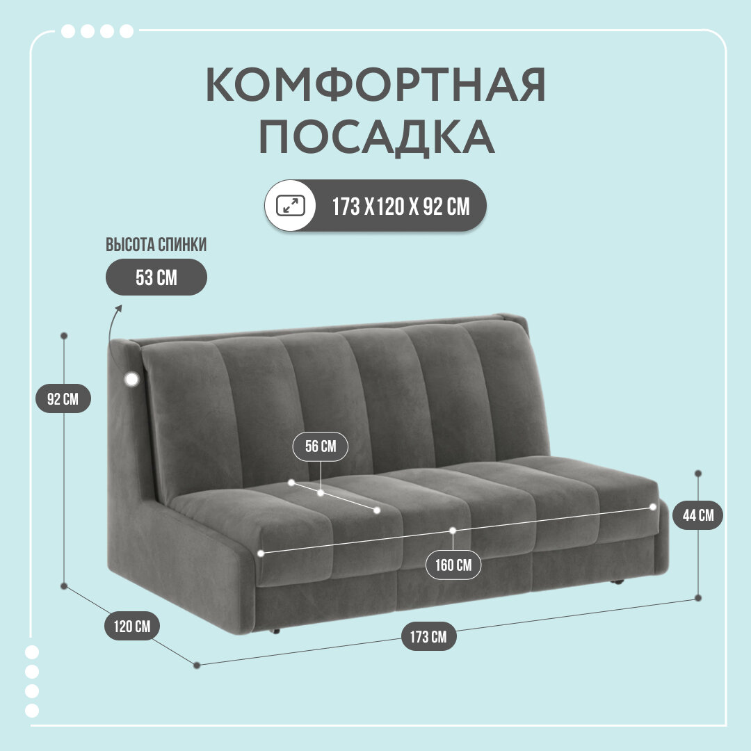 Диван тканевый прямой Венеция 160 см НзПБ Premier серый (Микровелюр)
