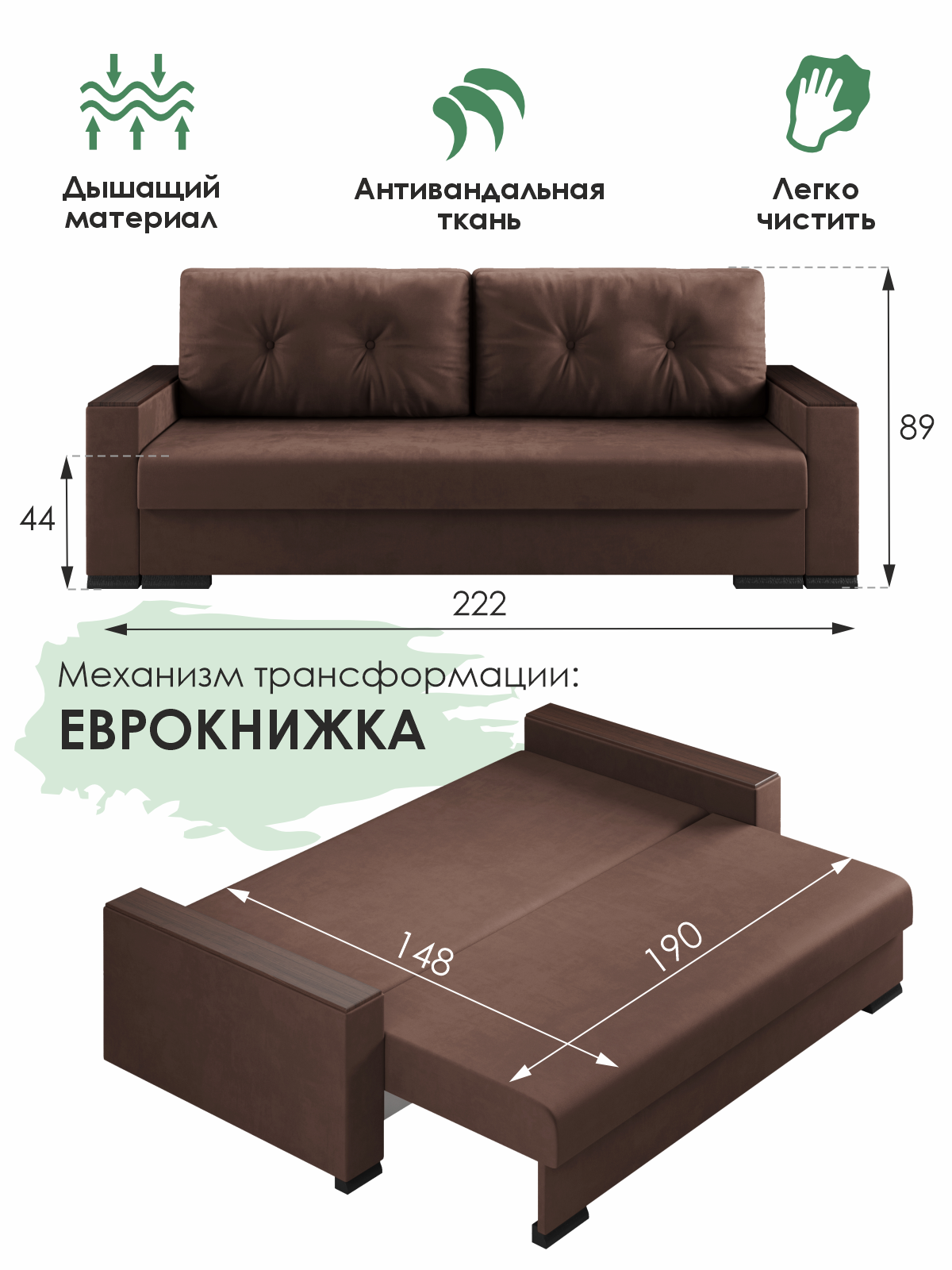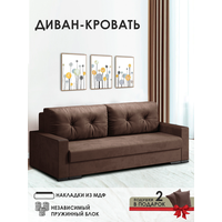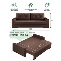Прямой раскладной диван-кровать Атланта, 222х94х89 см, с накладками, коричневый бархат, Ами Мебель Беларусь: сравнение цен, характеристики, фото, актуальное наличие и цены.