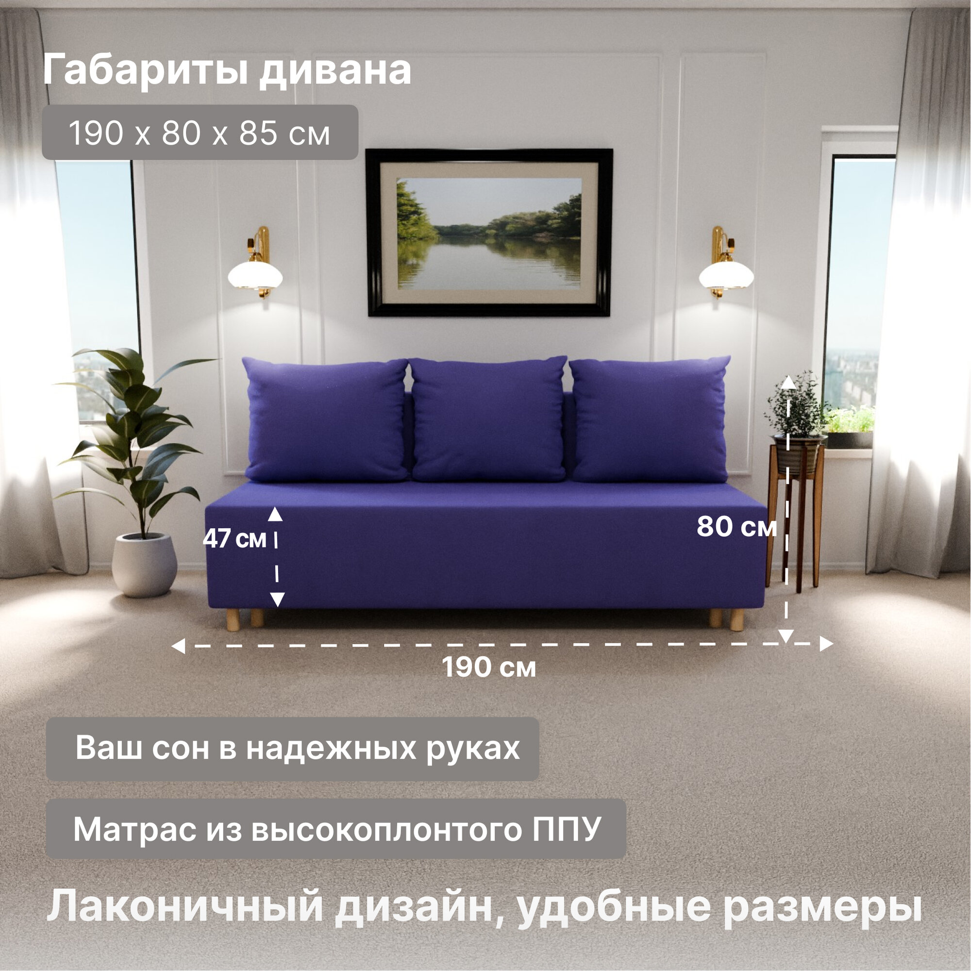 Купить Диван, диван-кровать, диван раскладной «Лайт» ППУ, Велютта люкс 46, размеры 190х80х100, фиолетовый с доставкой по всей России.