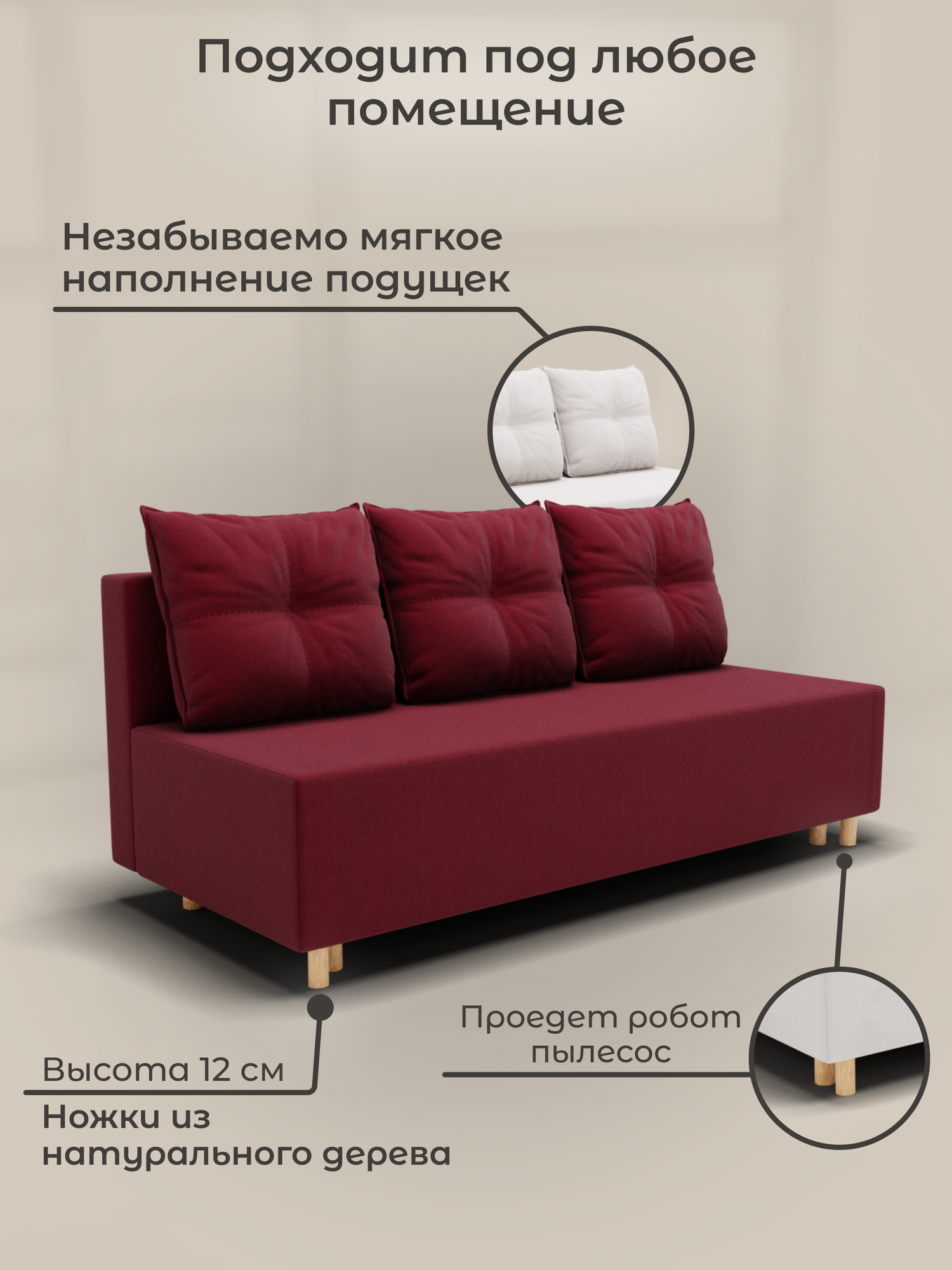 | Особенности | раскладная конструкция, с подлокотниками, съемные подушки, ящик для белья |