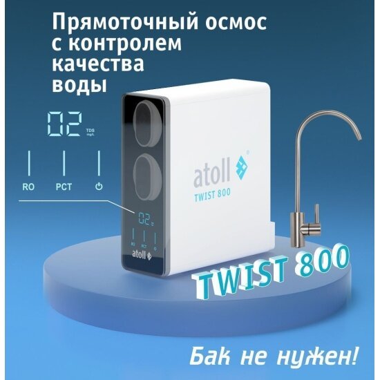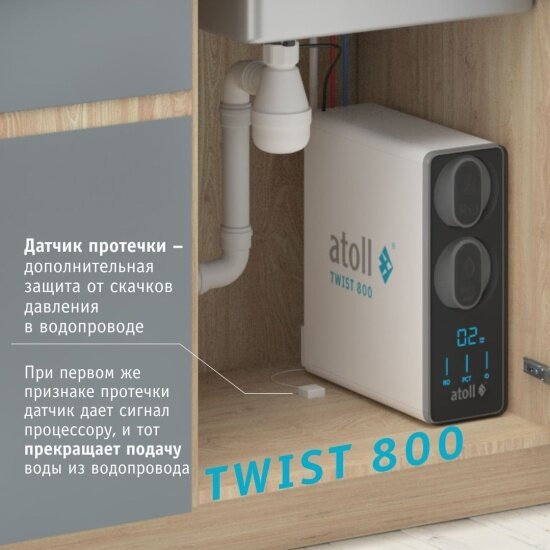 Прямоточная система обратного осмоса atoll TWIST 800 (без крана) в компактном корпусе все самые передовые технологии получения чистой питьевой воды.
