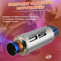 Цвет серебристый. Аналоговый глушитель, производство Китай, хорошее качество. В комплекте переходник с 51мм на 39мм! Подходит на многие мотоциклы. В комплекте глушитель, переходник, крепеж и пружинки. Размеры на одном из фото.