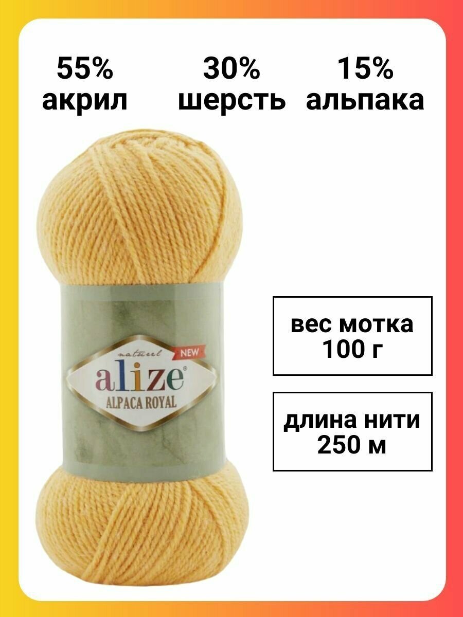 Купить Пряжа для вязания Alize Alpaca Royal NEW 423 тосканский желтый, 100 г, 250 м, 5 штук с доставкой по всей России.