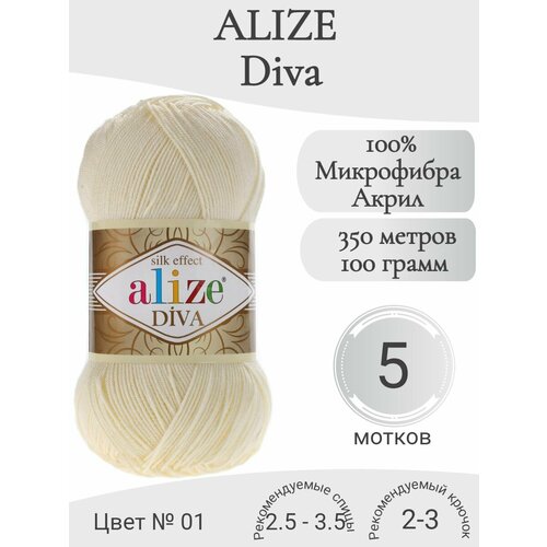 Пряжа Alize Diva (Ализе Дива) 01-кремовый: сравнение цен, характеристики, фото, актуальное наличие и цены.