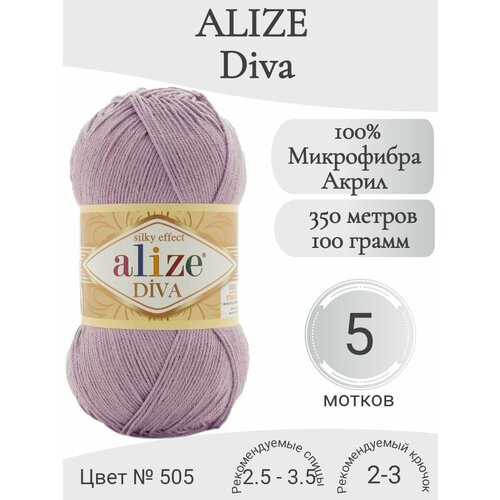 Пряжа Alize Diva (Ализе Дива) 505-пепельно-сиреневый: сравнение цен, характеристики, фото, актуальное наличие и цены.