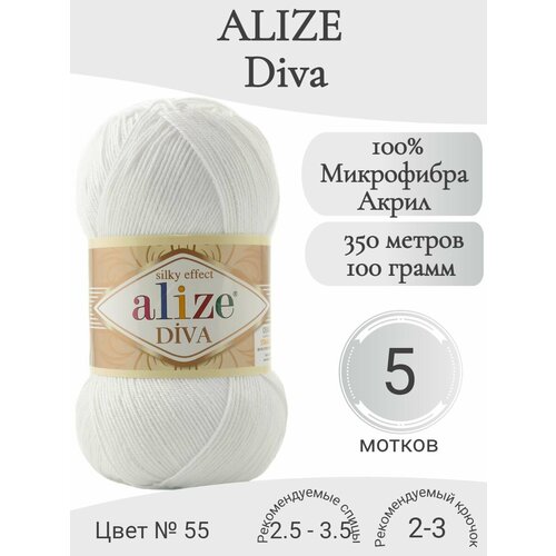 Пряжа Alize Diva (Ализе Дива) 55-белый: сравнение цен, характеристики, фото, актуальное наличие и цены.