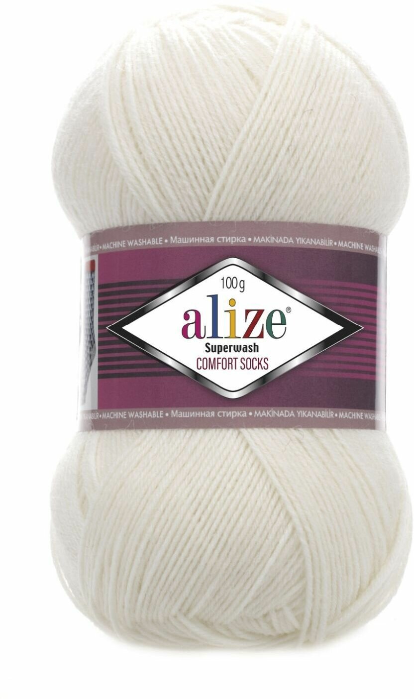 Пряжа Superwash comfort socks или Superwash 100 Alize (производитель изменил название) - упругая, эластичная, теплая. Супервош Комфорт сокс (Супервош 100) Ализе не колется, что очень подходит для детей и взрослых. Тонкая нитка прекрасно подойдет для вязки легких, но в тоже время теплых вещей. Пряжа легко распускается и перевязывается несколько раз, не деформируясь и не влияя на вид изделия. 75% шерсти в составе гарантируют, что даже в самый холодный день ваших родных согреет тепло связанных вашими руками вещей. Alize Superwash Comfort socks безупречно подходит для вязания комфортных домашних тапочек, носков, шарфов, шапок, свитеров. Изделия из этой пряжи не скатываются, долго сохраняют цвет, их можно стирать в машине. Нить плотной скрутки, достаточно мягкая, не раздражает кожу. Теплая пряжа Superwash 100 порадует вязальщиц своим качеством и прочностью нити. Пряжа приятная на ощупь, состоит из высококачественной шерсти, что позволяет долго сохранять тепло, и полиамида, благодаря которому изделие хорошо держит форму, не выцветает и не скатывается, отлично переносит машинную стирку. Пряжа представлена в разнообразной цветовой палитре, прочная нить ложится аккуратными красивыми рядами при вязании, создавая эффектный узор. С пряжей Superwash 100 вы получите удовольствие от результата вязания, а правильный подбор спиц или крючка поможет насладиться процессом в полной мере. В состав пряжи входит чистая шерсть супервош (75%) и полиамид (25%). Размер: 100 гр. 420 м. Рекомендуется вязать спицами 2-4 мм или использовать крючкок 1-3. Страна производитель: Турция