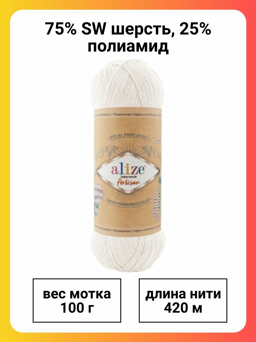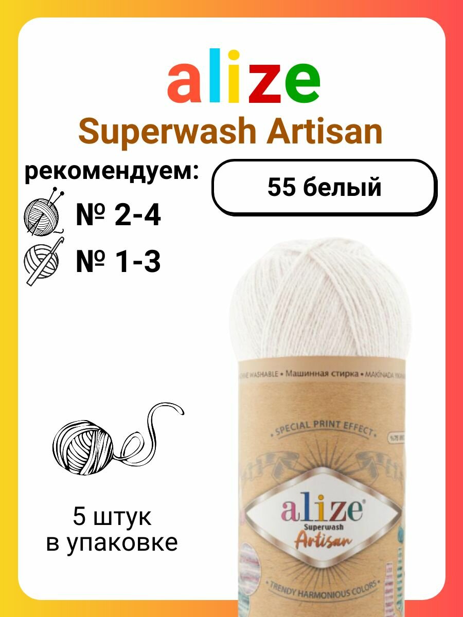 Пряжа Alize Superwash Artisan 55 белый, 100 г, 420 м, 5 штук: сравнение цен, характеристики, фото, актуальное наличие и цены.