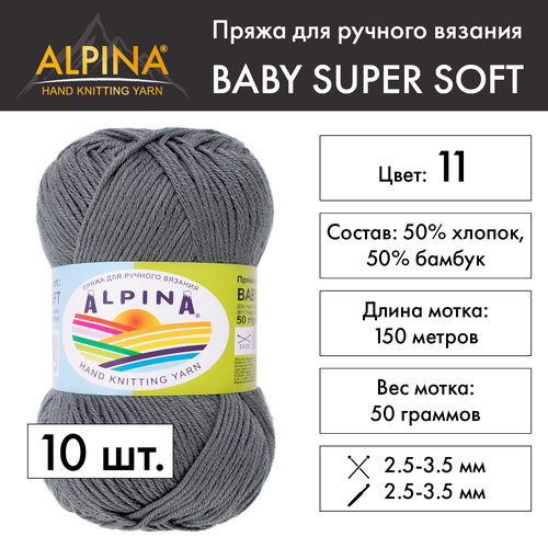 Купить Пряжа Alpina «BABY SUPER SOFT» 10 шт. по 50 г 50% хлопок, 50% бамбук 150 м №11 серый с доставкой по всей России. Пряжа Alpina «BABY SUPER SOFT» 10 шт. по 50 г 50% хлопок, 50% бамбук 150 м №11 серый: сравнение цен, характеристики, фото, актуальное наличие и цены.