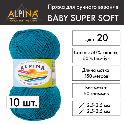 Купить Пряжа Alpina «BABY SUPER SOFT» 10 шт. по 50 г 50% хлопок, 50% бамбук 150 м №20 бирюзовый с доставкой по всей России. Пряжа Alpina «BABY SUPER SOFT» 10 шт. по 50 г 50% хлопок, 50% бамбук 150 м №20 бирюзовый: сравнение цен, характеристики, фото, актуальное наличие и цены.