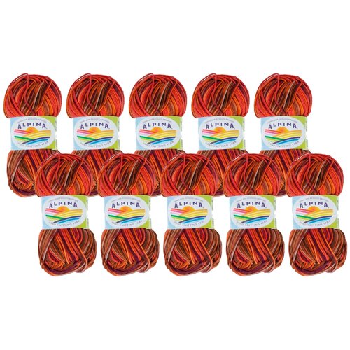 Пряжа Alpina Пряжа ALPINA «KATRIN» 100% мерсеризованный хлопок 10 шт.х50г 140м, 1 % хлопок, 50 г, 140 м, 10 шт., №220 бордовый-оранжевый-коричневый-фиолетовый
