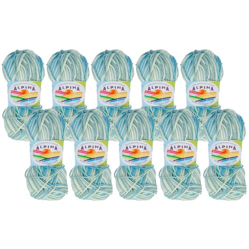 Пряжа Alpina Пряжа ALPINA «KATRIN» 100% мерсеризованный хлопок 10 шт.х50г 140м, 1 % хлопок, 50 г, 140 м, 10 шт., №5335 голубой-св.зеленый-оливковый