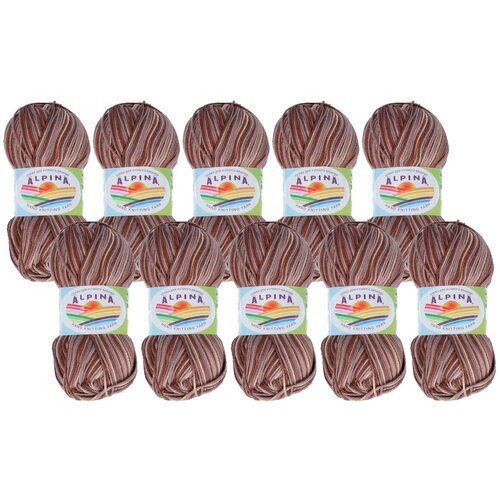 Пряжа Alpina Пряжа ALPINA «KATRIN» 100% мерсеризованный хлопок 10 шт.х50г 140м, 1 % хлопок, 50 г, 140 м, 10 шт., №9022 серый-коричневый-бежевый