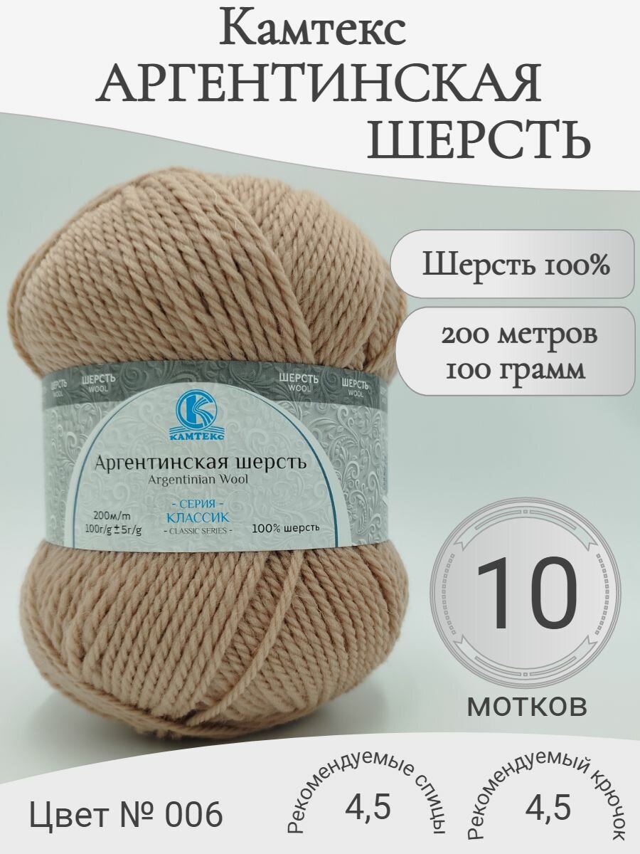 Купить Пряжа Аргентинская шерсть Камтекс, 006-бежевый светлый (10 мотков) с доставкой по всей России. Пряжа Аргентинская шерсть Камтекс, 006-бежевый светлый (10 мотков): сравнение цен, характеристики, фото, актуальное наличие и цены.