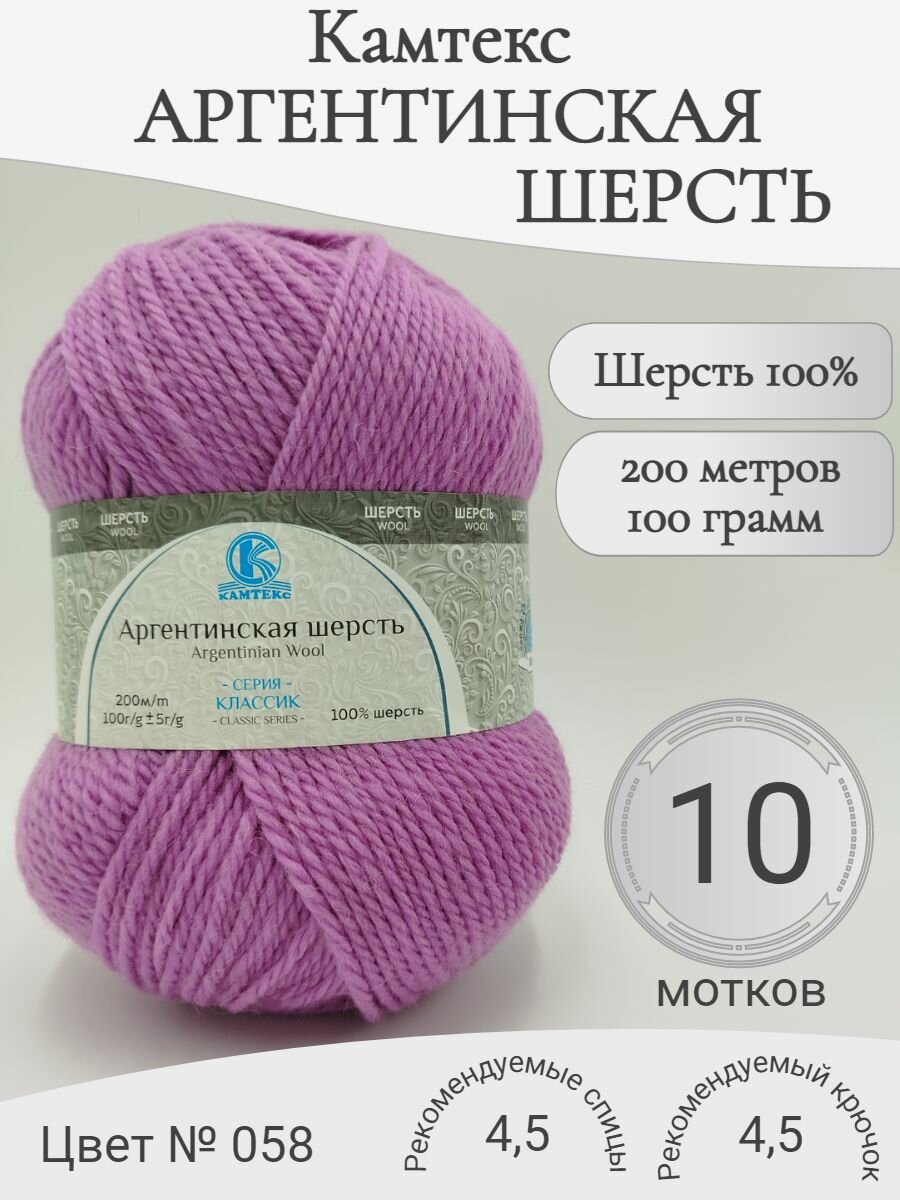 Купить Пряжа Аргентинская шерсть Камтекс, 058-сирень (10 мотков) с доставкой по всей России. Пряжа Аргентинская шерсть Камтекс, 058-сирень (10 мотков): сравнение цен, характеристики, фото, актуальное наличие и цены.
