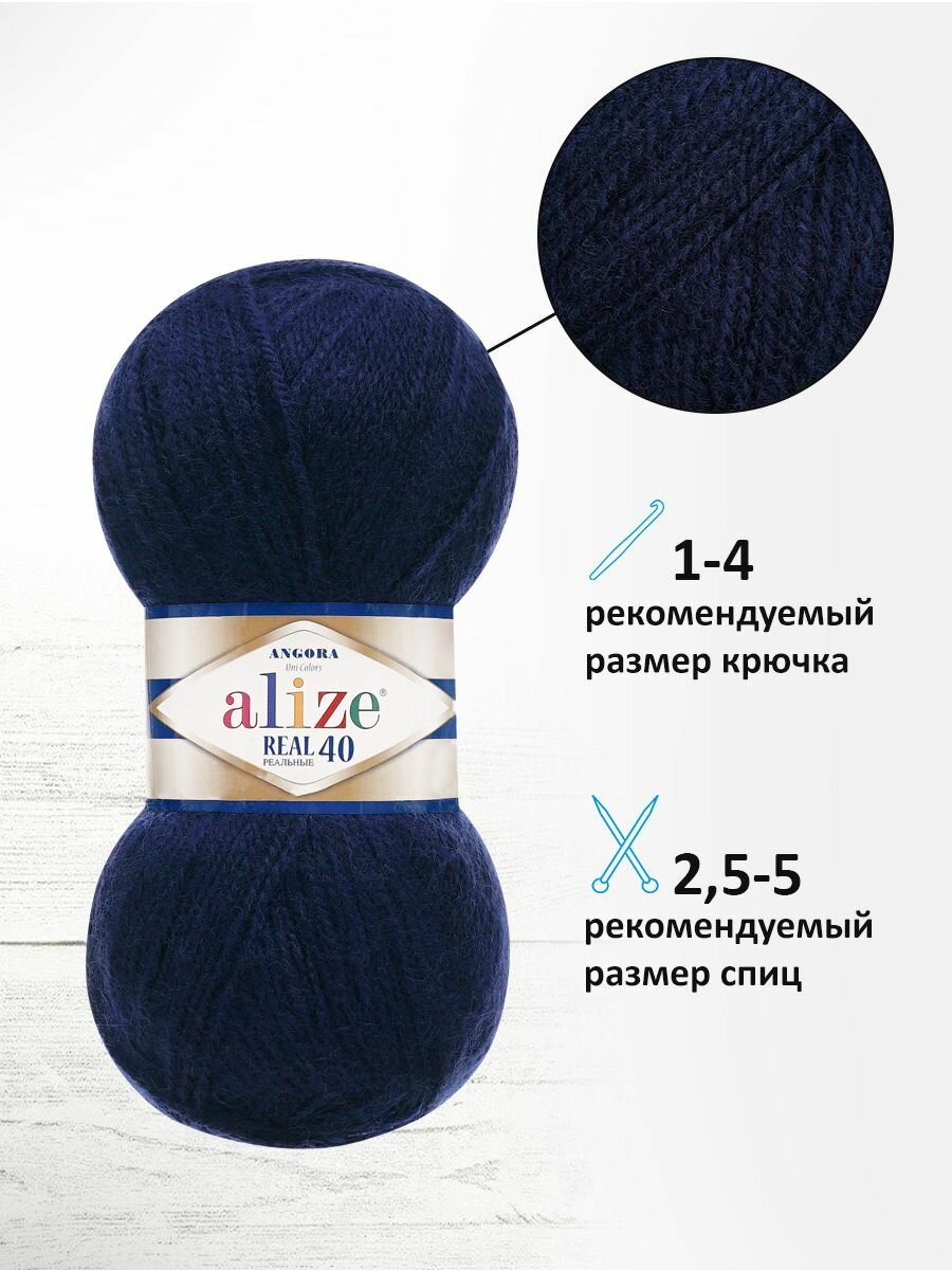 Купить Пряжа для вязания ALIZE ‘Angora real 40’, 100г, 430м (40% шерсть, 60% акрил) (58 темно-синий), 5 мотков с доставкой по всей России.