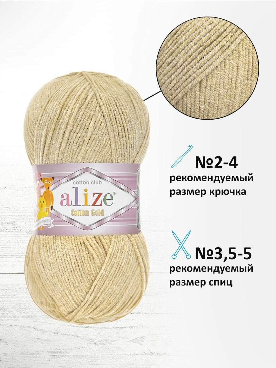 Пряжа для вязания ALIZE ‘Cotton gold’, 100г, 330м (55% хлопок, 45% акрил), ТУ (262 бежевый), 5 мотков: сравнение цен, характеристики, фото, актуальное наличие и цены.