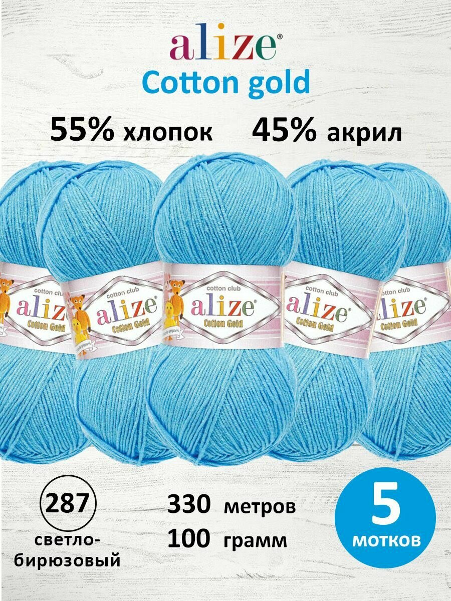 Купить Пряжа для вязания ALIZE ‘Cotton gold’, 100г, 330м (55% хлопок, 45% акрил), ТУ (287 светло-бирюзовый), 5 мотков с доставкой по всей России. Пряжа для вязания ALIZE ‘Cotton gold’, 100г, 330м (55% хлопок, 45% акрил), ТУ (287 светло-бирюзовый), 5 мотков: сравнение цен, характеристики, фото, актуальное наличие и цены.