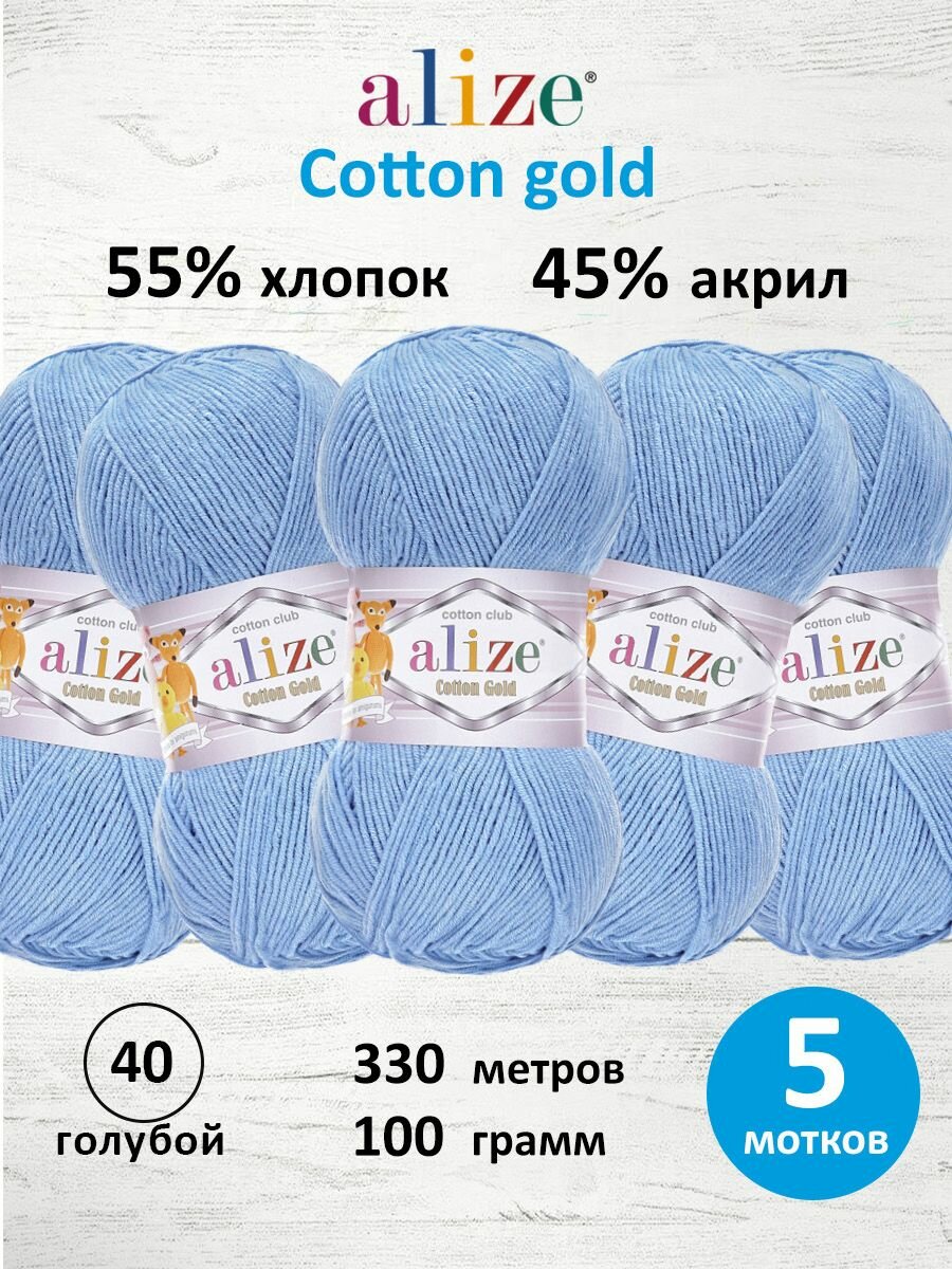 Купить Пряжа для вязания ALIZE ‘Cotton gold’, 100г, 330м (55% хлопок, 45% акрил), ТУ (40 голубой), 5 мотков с доставкой по всей России. Пряжа для вязания ALIZE ‘Cotton gold’, 100г, 330м (55% хлопок, 45% акрил), ТУ (40 голубой), 5 мотков: сравнение цен, характеристики, фото, актуальное наличие и цены.