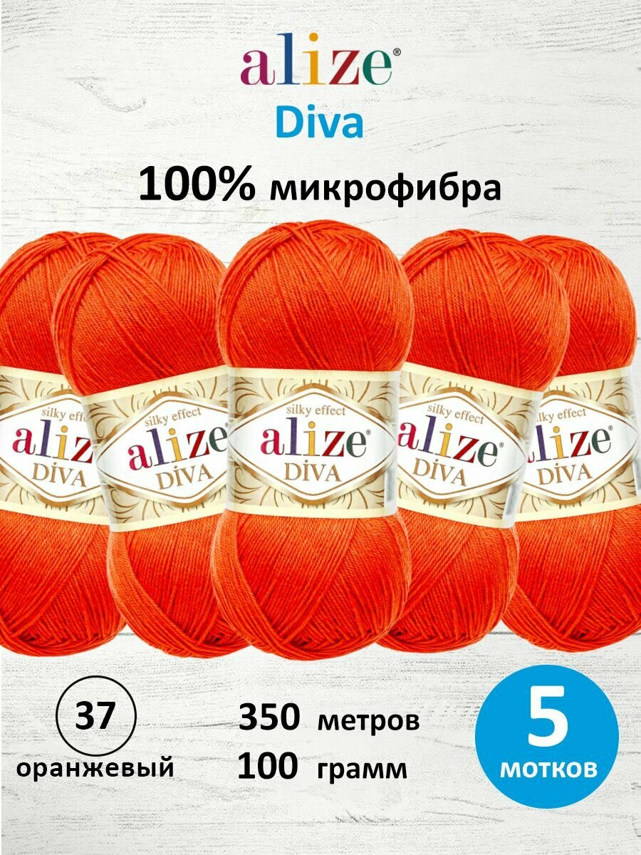 Купить Пряжа для вязания ALIZE ‘Diva’, 100г, 350м (100% микрофибра) ТУ (37 Оранжевый), 5 мотков с доставкой по всей России. Пряжа для вязания ALIZE ‘Diva’, 100г, 350м (100% микрофибра) ТУ (37 Оранжевый), 5 мотков: сравнение цен, характеристики, фото, актуальное наличие и цены.