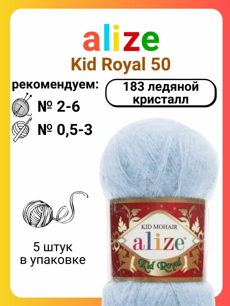 Купить Пряжа для вязания Alize Kid Royal 50 183 ледяной кристалл, 50 г, 500 м, 5 штук с доставкой по всей России.