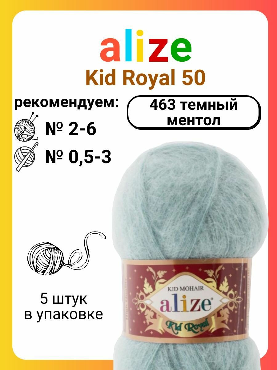 Пряжа для вязания Alize Kid Royal 50 463 темный ментол, 50 г, 500 м, 5 штук: сравнение цен, характеристики, фото, актуальное наличие и цены.