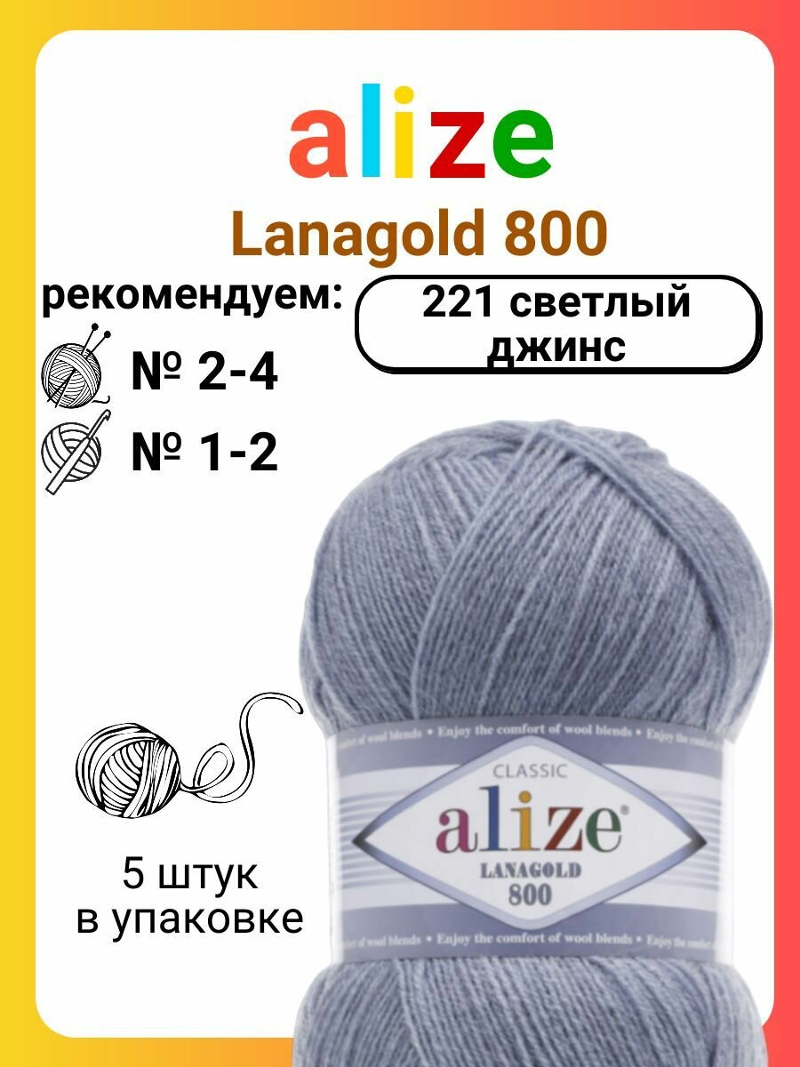 Пряжа для вязания Alize Lanagold 800 (221) светлый джинс, 100 г, 800 м, 5 штук: сравнение цен, характеристики, фото, актуальное наличие и цены.