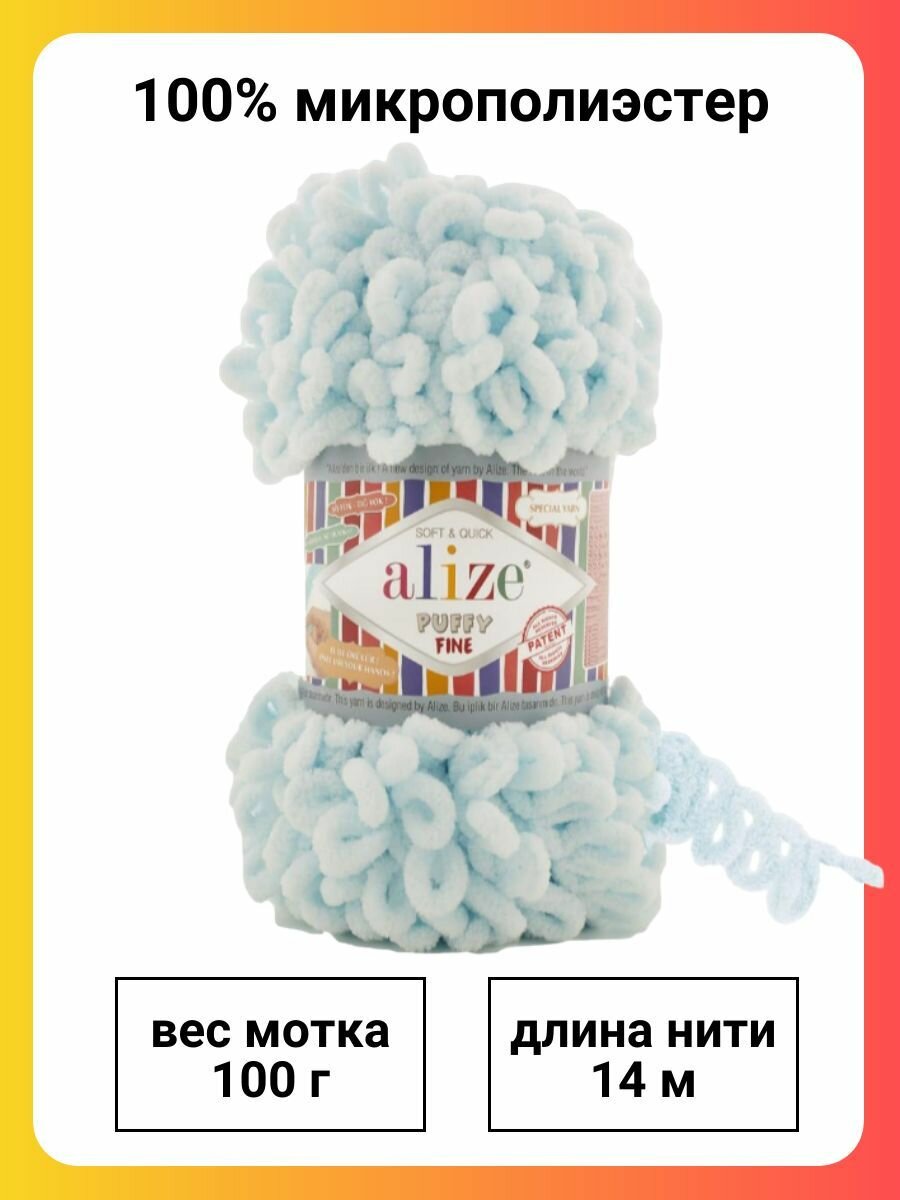 Купить Пряжа для вязания Alize Puffy Fine 522 мята, 100 г, 14 м, 5 штук с доставкой по всей России.