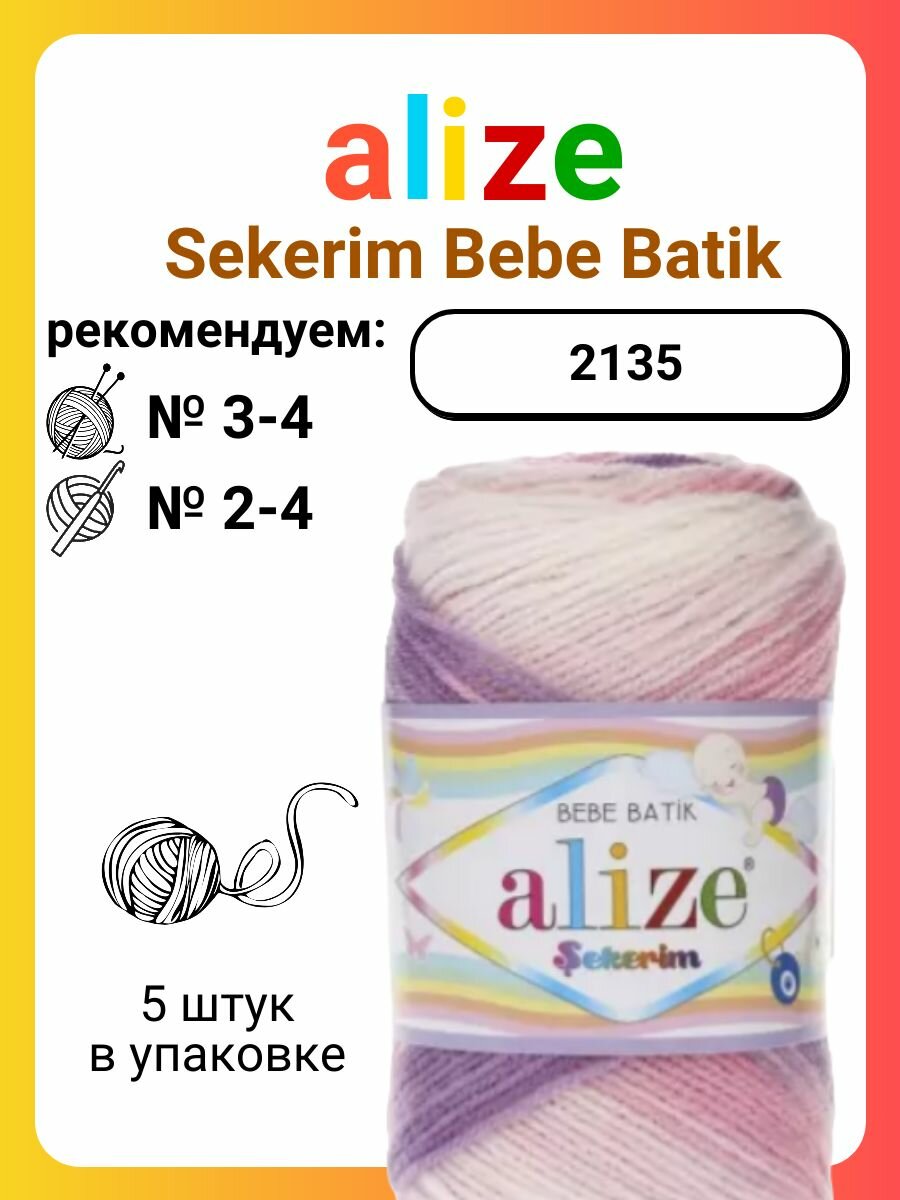Купить Пряжа для вязания Alize Sekerim Bebe Batik 2135, 100 г, 320 м, 5 штук с доставкой по всей России. Пряжа для вязания Alize Sekerim Bebe Batik 2135, 100 г, 320 м, 5 штук: сравнение цен, характеристики, фото, актуальное наличие и цены.