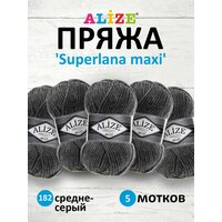 Купить Пряжа для вязания ALIZE ‘Superlana maxi’, 100г, 100м (75% акрил, 25% шерсть), ТУ (182 средне-серый), 5 мотков с доставкой по всей России.