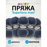 Купить Пряжа для вязания ALIZE ‘Superlana maxi’, 100г, 100м (75% акрил, 25% шерсть), ТУ (203 джинса), 5 мотков с доставкой по всей России.