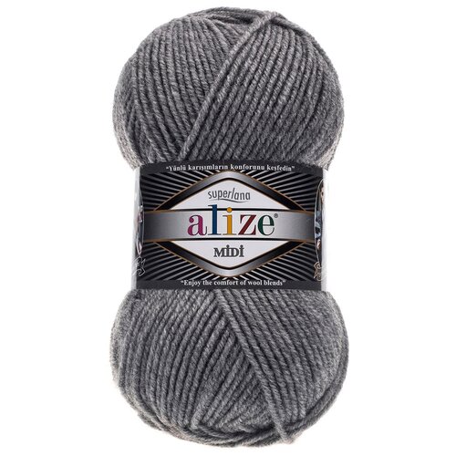 Пряжа Alize Superlana Midi (75% акрил, 25% шерсть), произведенная турецкой фирмой. Пряжа Alize Superlana Midi – ее можно было бы назвать классической полушерстью, если бы не толщина чуть выше средней, но в остальном она имеет традиционные свойства турецкой пряжи: хорошая выровненность по всей толщине, качественная прокраска, приятная текстура. Выглядит она тоже обычно, но свои особенности есть. В первую очередь это структура: в крутке использованы три нити, каждая из которых состоит еще из двух. Благодаря этому механические свойства нити стабильны, изделия не вытягиваются, а вязать с равномерной плотностью легко и просто. Изделия из этой пряжи можно стирать в стиральной машине. Однако сушить их всё же лучше на горизонтальной поверхности. Необыкновенно мягкая пряжа приятно удивит и порадует вязальщиц своим превосходным качеством. Пряжа для вязания турецкая подходит для теплых зимних и осенних вещей. Пряжа Ализе является своего рода гарантом теплоты и износостойкости Вашего творения. Акрил помогает связанным вещам держать форму, добавляет объем. Шерсть же, наряду со своими очевидными достоинствами, помогает оставаться в доступном ценовом сегменте, чтобы пряжу Ализе купить смогла каждая мастерица. Пряжа для вязания турецкая Вас не подведет, даже если Вы захотите воплотить в жизнь сложный фасон или трудный узор. Пряжа даст возможность творить бесконечно, дарить замечательные подарки родным и близким. Особенности в вязке: легкая и приятная в работе. Вы получите удовольствие от результата вязания, а правильный выбор спиц или крючка поможет насладиться процессом в полной мере. Рекомендуем: спицы No 5-7, крючок No 2-4.