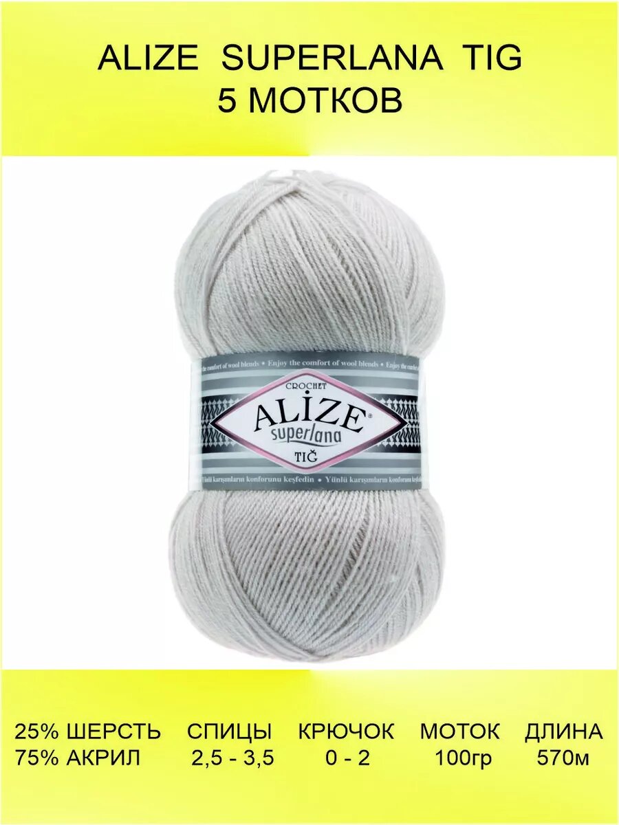 Пряжа для вязания ALIZE SUPERLANA TIG Суперлана Тиг: 168 (каменный) / 5 шт / 570 м / 100 г / 25% шерсть, 75% акрил: сравнение цен, характеристики, фото, актуальное наличие и цены.
