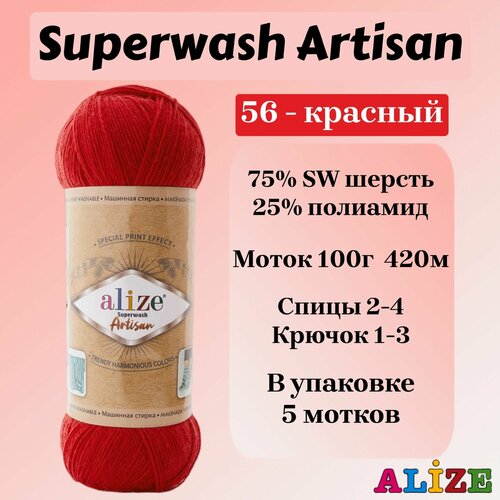 Пряжа для вязания Alize Superwash Artisan, цвет 56 красный, 100г, 420м, 5шт/упак: сравнение цен, характеристики, фото, актуальное наличие и цены.