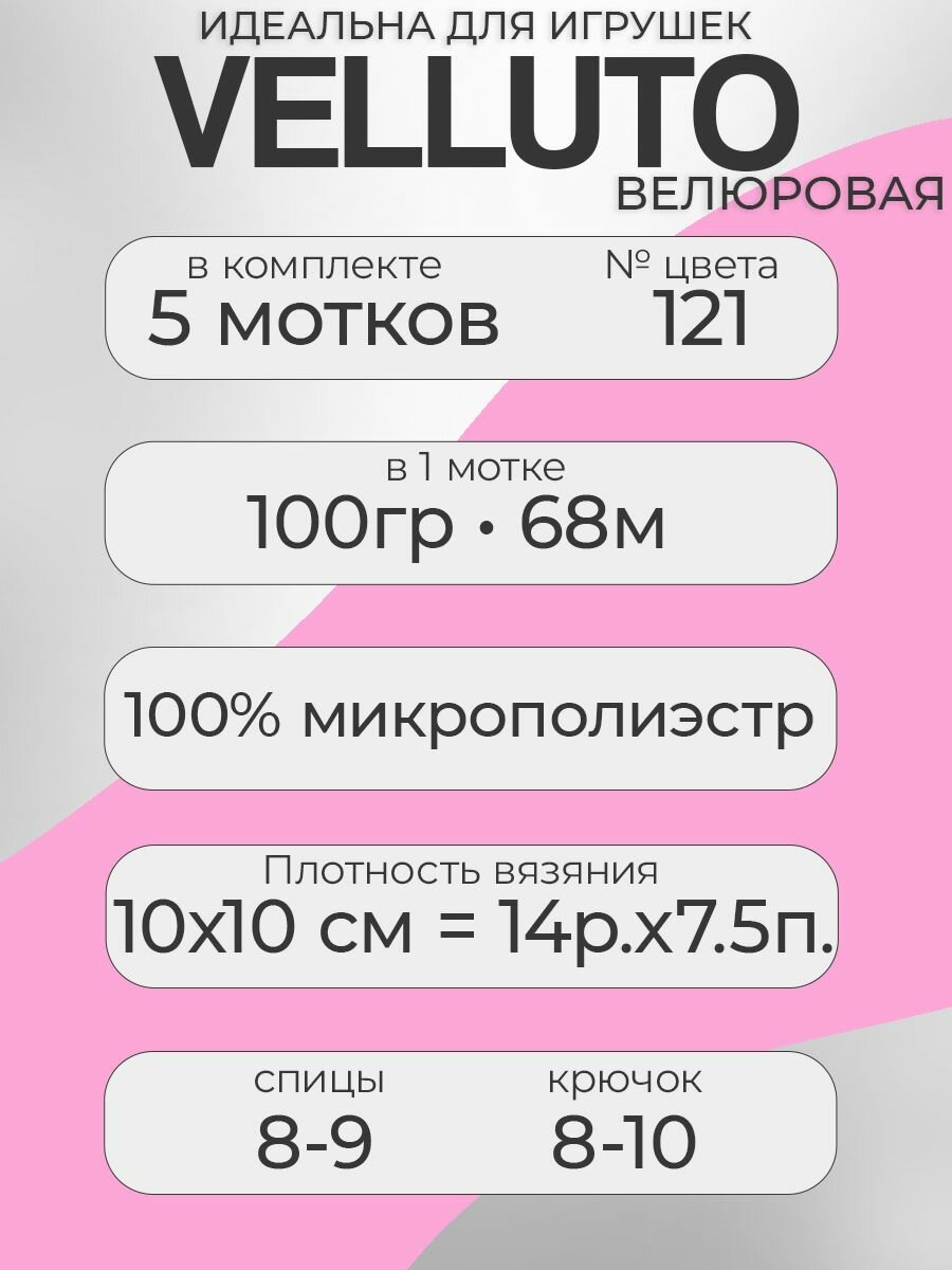 Купить Пряжа для вязания ALIZE ‘Velluto’, 100г, 68м (100% микрополиэстер) (121 леденец), 5 мотков с доставкой по всей России.