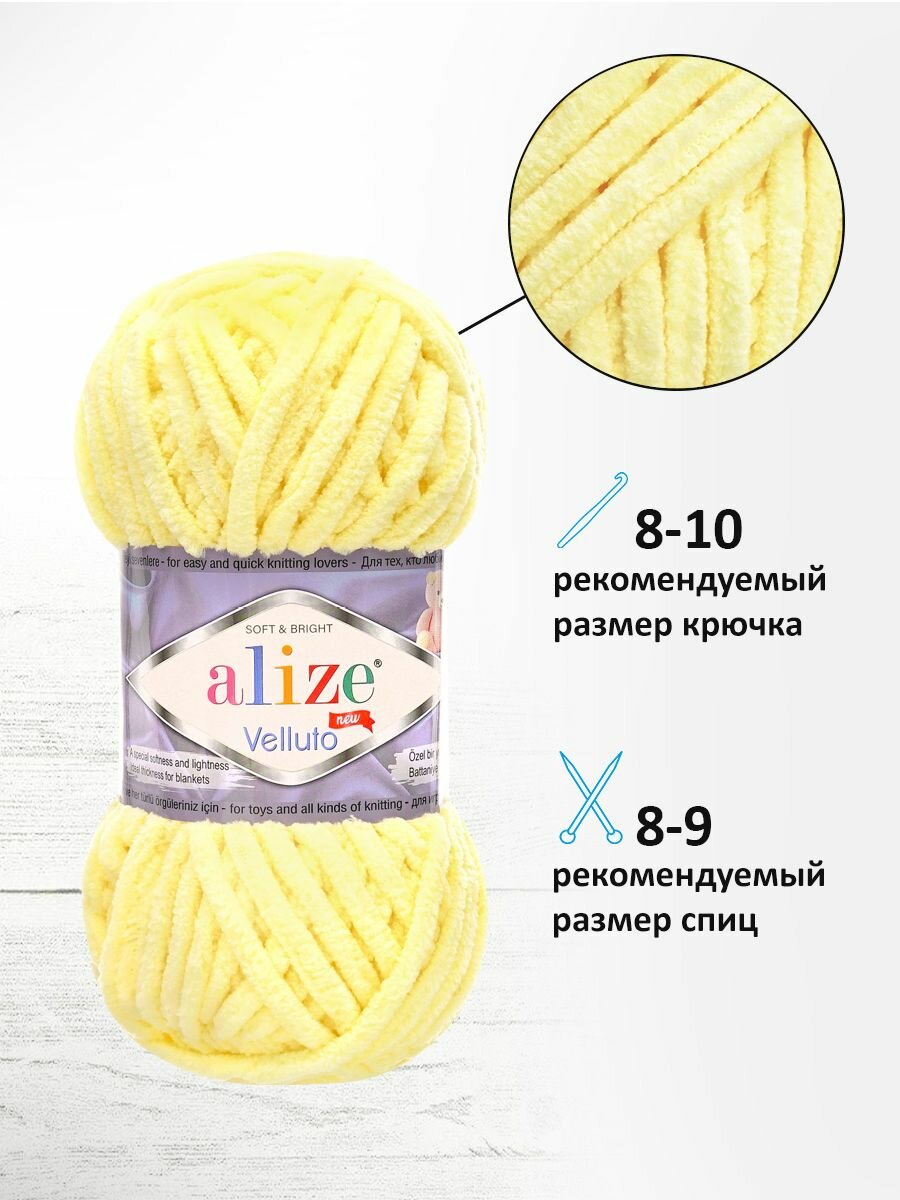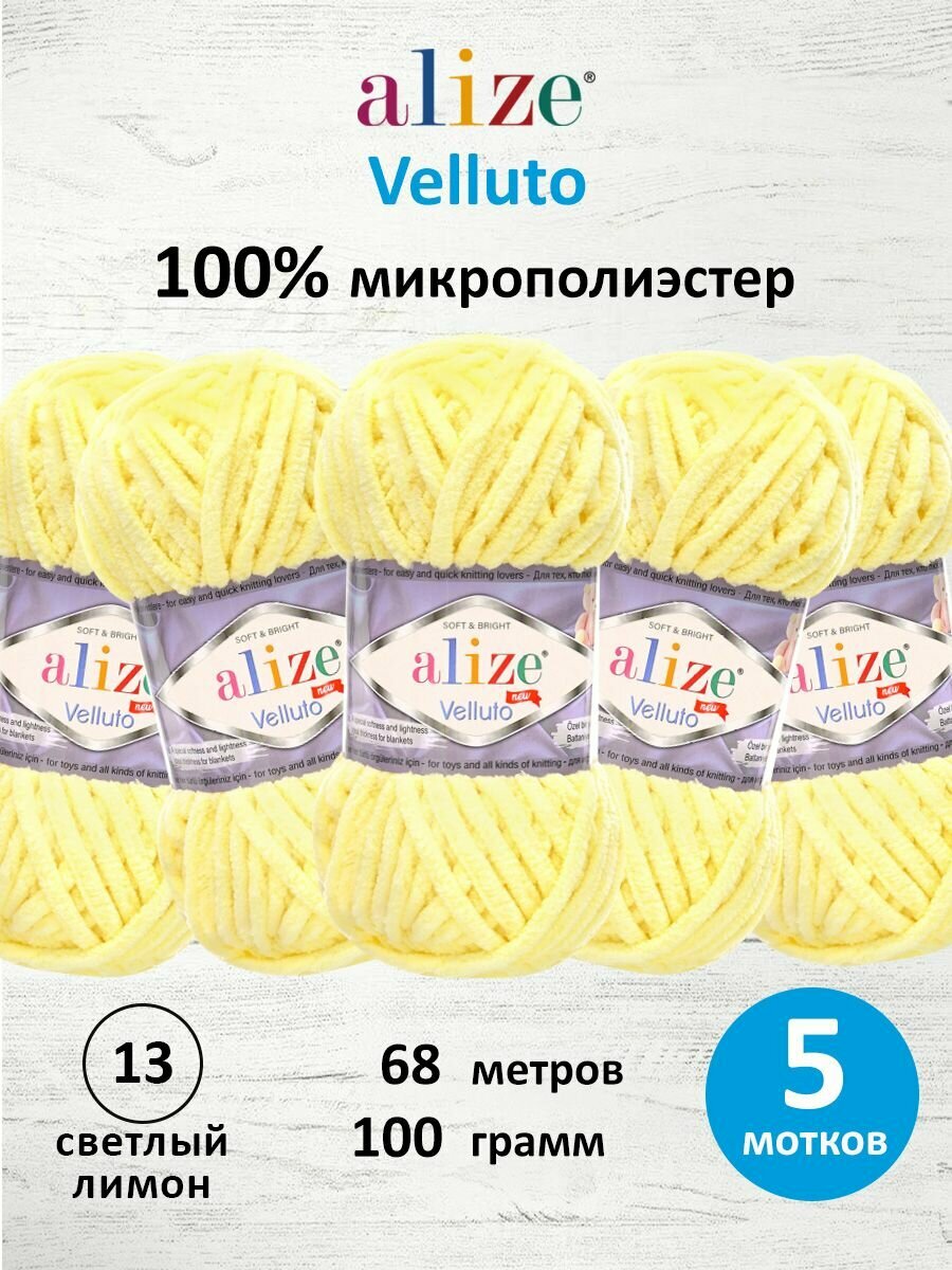 Пряжа для вязания ALIZE ‘Velluto’, 100г, 68м (100% микрополиэстер) (13 светлый лимон), 5 мотков: сравнение цен, характеристики, фото, актуальное наличие и цены.
