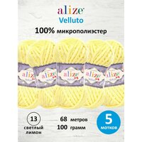 Купить Пряжа для вязания ALIZE ‘Velluto’, 100г, 68м (100% микрополиэстер) (13 светлый лимон), 5 мотков с доставкой по всей России.