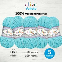Купить Пряжа для вязания ALIZE ‘Velluto’, 100г, 68м (100% микрополиэстер) (16 океан), 5 мотков с доставкой по всей России.
