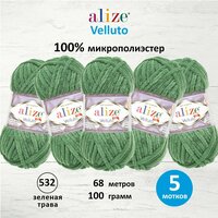 Купить Пряжа для вязания ALIZE ‘Velluto’, 100г, 68м (100% микрополиэстер) (532 зеленая трава), 5 мотков с доставкой по всей России.