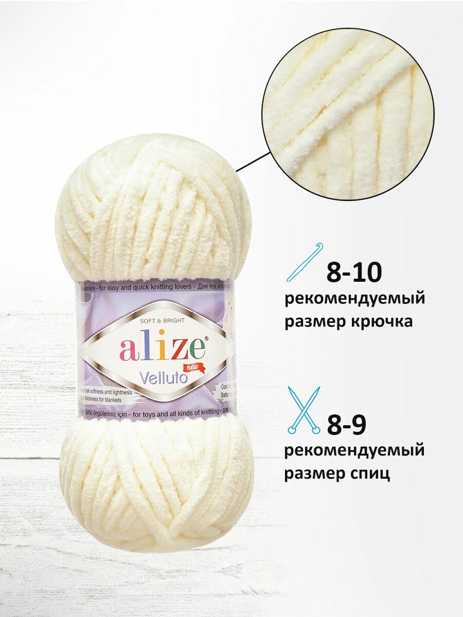 Пряжа для вязания ALIZE ‘Velluto’, 100г, 68м (100% микрополиэстер) (62 светло-молочный), 5 мотков: сравнение цен, характеристики, фото, актуальное наличие и цены.